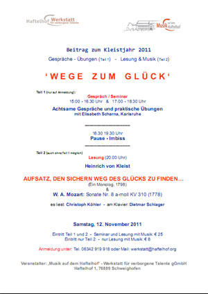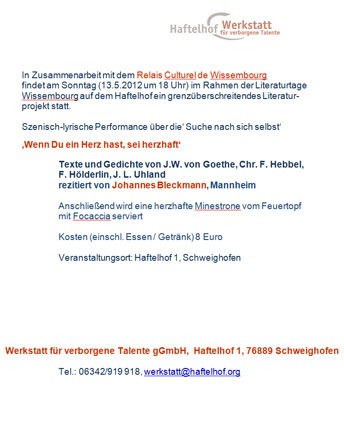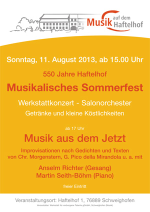 Aktuell finden keine öffentliche Konzerte oder Literaturveranstaltungen statt